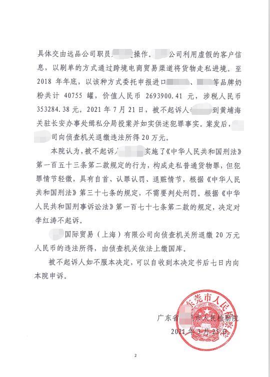 > 上海海关律师张化帅:李某某走私奶粉税款35万,不起诉